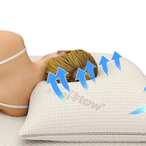 Our Ultra-Luxurious Kool-Flow Micro-Vented Viscose of Bamboo Cover, along with our Glacier Gel-Infused memory foam offer an unprecedented breathability and heat-transfer that allows air to circulate through the pillow and keep you cooler all night long!